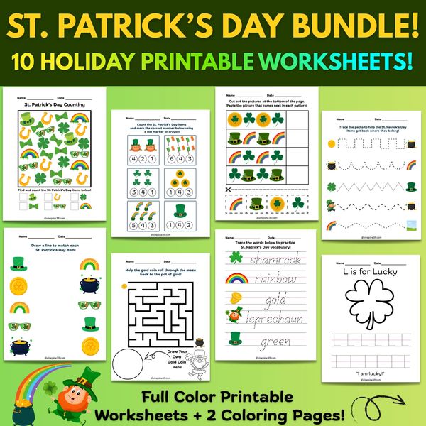 Keep your kids or students having fun on the holiday with this 10 pack of printables.
